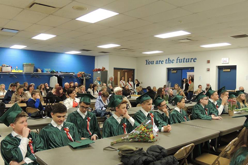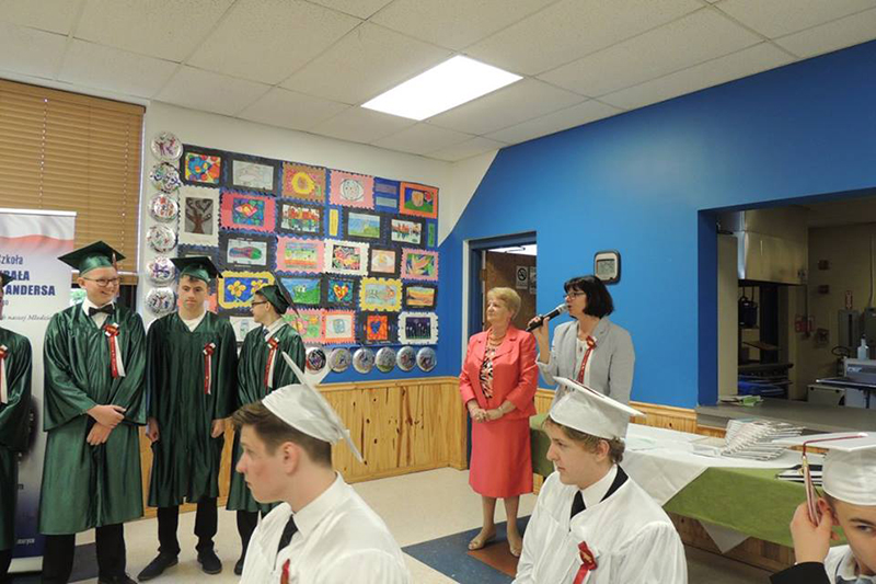 W tym dniu zielone togi ubrali uczniowie klas VIII, pożegnali oni progi szkoły podstawowej. Panie wychowawczynie p. Wiesława Dziedzic oraz p. Jadwiga Cisowska wraz z uczniami przygotowali piękną część artystyczną, która zamknęła 8 lat nauki i pracy „w podstawówce”. Gratulujemy wszystkim uczniom wzorowych świadectw oraz życzymy udanych wakacji, uśmiechu na co dzień oraz szczęśliwego powrotu do naszej szkoły w nowym roku szkolnym.