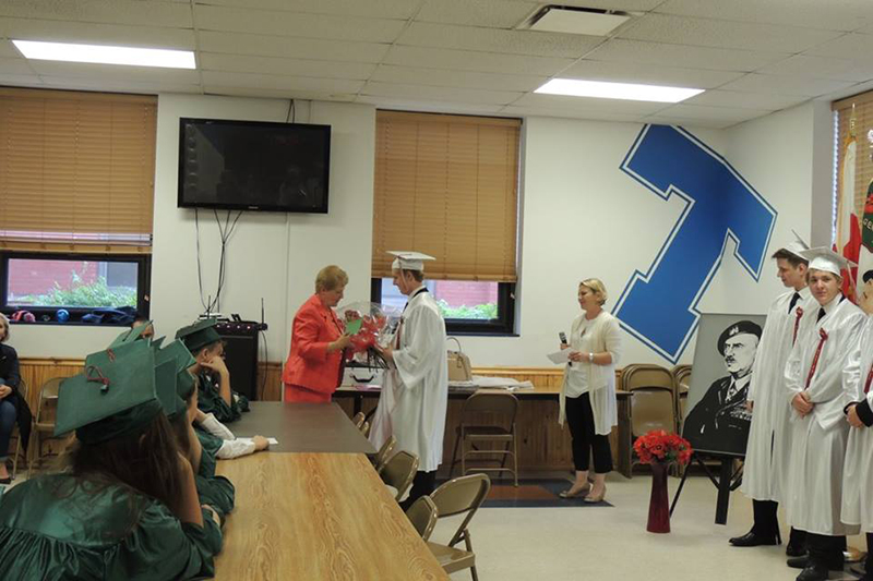 W sposób szczególny żegnaliśmy klasę III LO, która opuszcza mury naszej szkoły. Wszyscy ze wzruszeniem słuchali słów pożegnania uczennicy Oli Szul, która w imieniu Absolwentów Rocznika 2017 podziękowała Rodzicom, Nauczycielom i kolegom za wspólnie przeżyte lata. Głos zabrał również Michał Wyciszkiewicz, który zachęcał młodszych kolegów z klas VIII. do podjęcia wyzwania jakim jest Liceum. Uroczystość zakończyła się wręczeniem świadectw maturalnych oraz pamiątkową sesją zdjęciową.