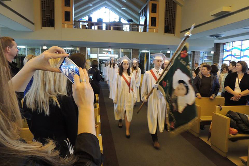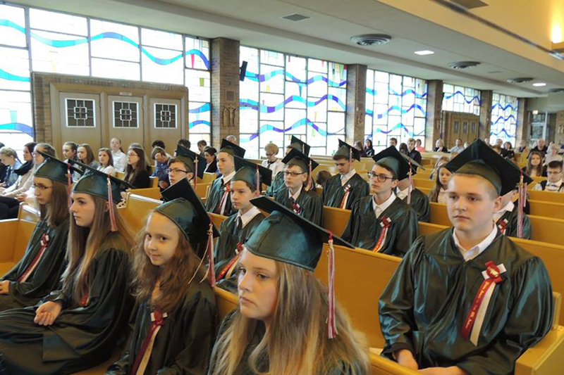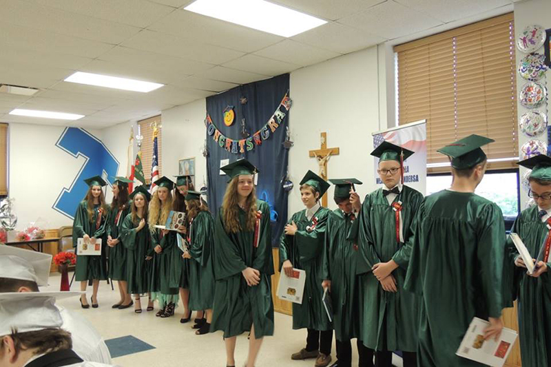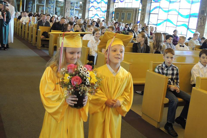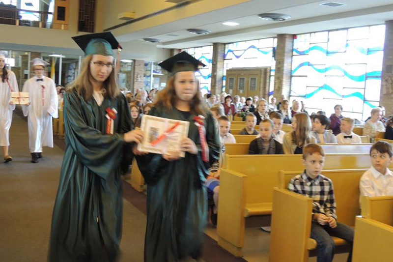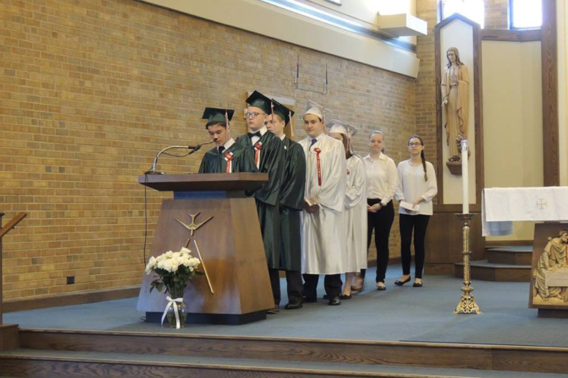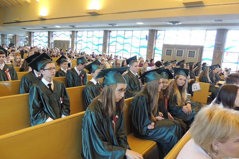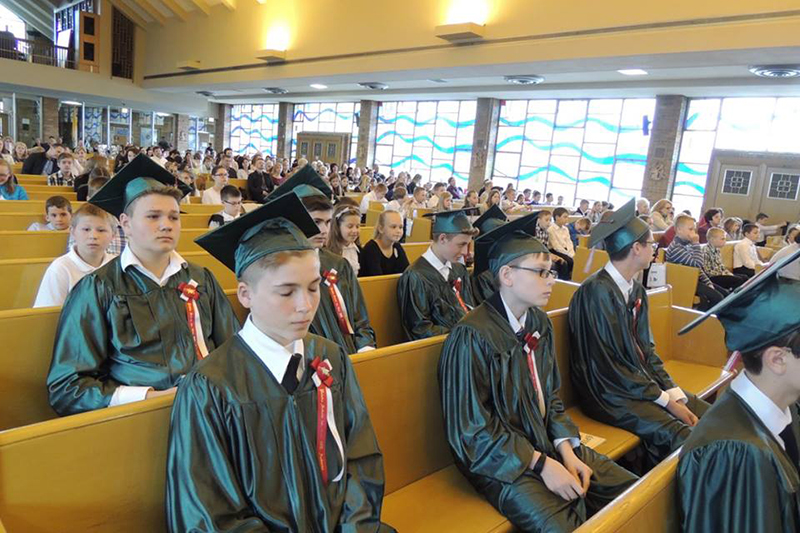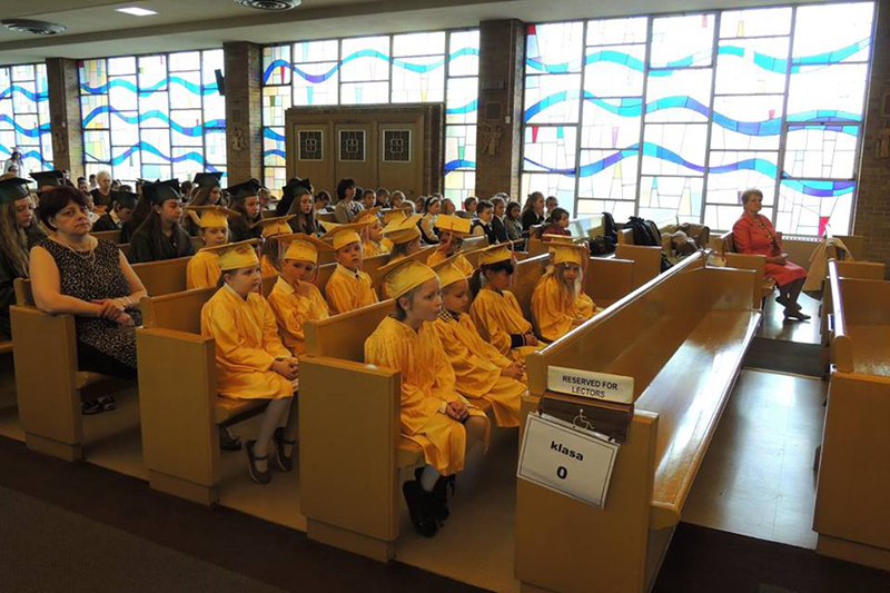 Uroczystość zakończenia roku szkolnego rozpoczęliśmy od uczestnictwa we mszy świętej, którą celebrował ks. Bronisław Jakubiec SDS. Reprezentanci wszystkich klas zarówno szkoły podstawowej jak i liceum wzięli czynny udział w oprawie mszy świętej: czytania, modlitwa wiernych, śpiewy, procesja z darami, posługa ministrantów. Wszystkim dziękujemy za trud, pomoc i wspólną posługę, która umożliwiła nam przeżycie Eucharystii.