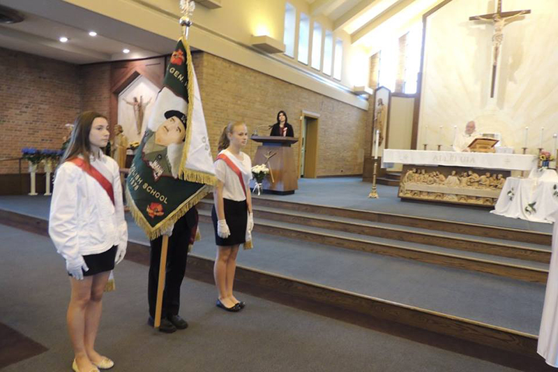 Podczas uroczystości w kościele nastąpiło również honorowe przekazanie sztandaru szkoły. Poczet sztandarowy w składzie: