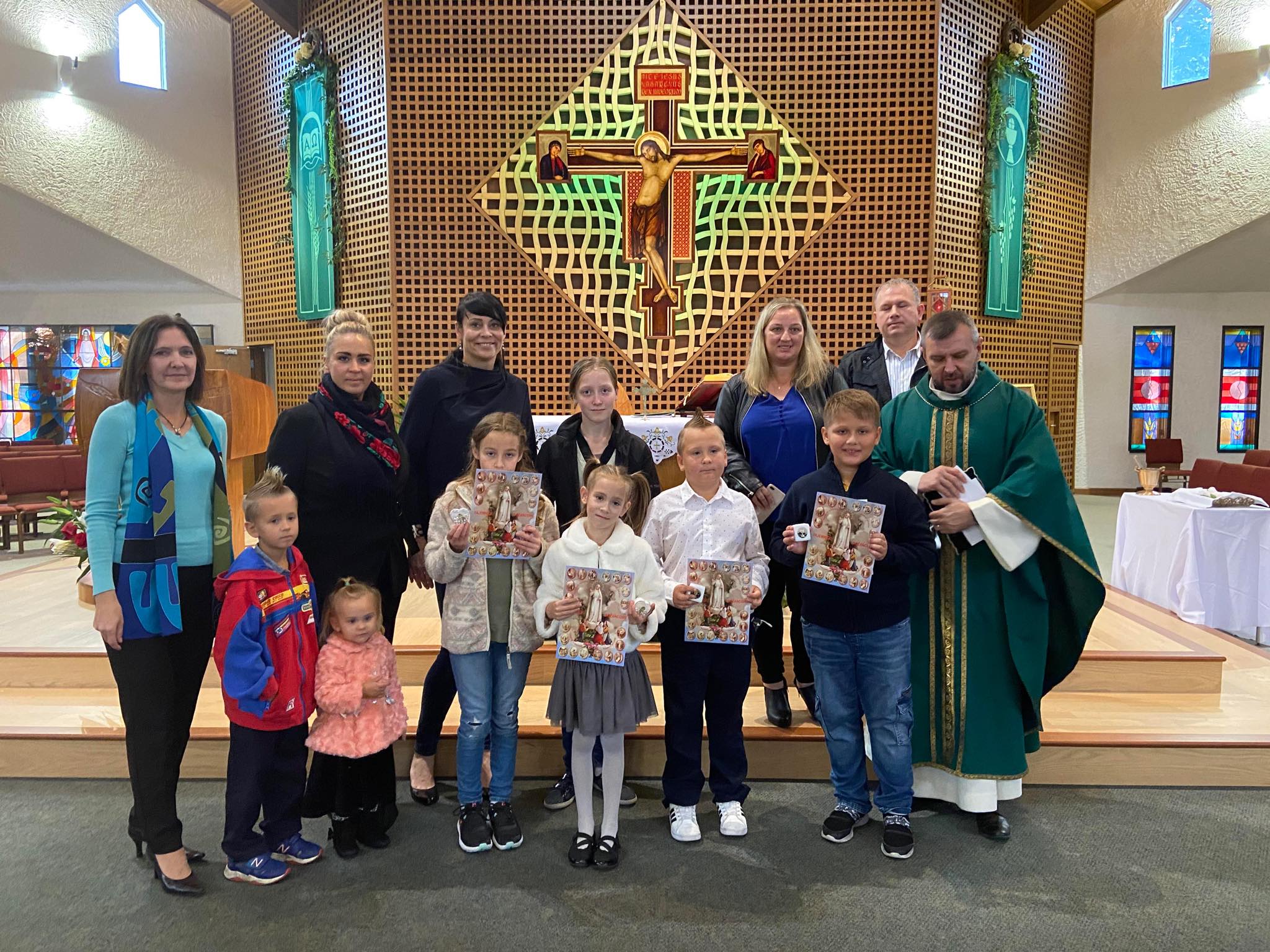 Dnia 24 października 2021 r. czworo uczniów przygotowujących się do sakramentu I Komunii św. uczestniczyło we mszy św. podczas której ks. Grzegorz Lorenz poświęcił i wręczył różańce.