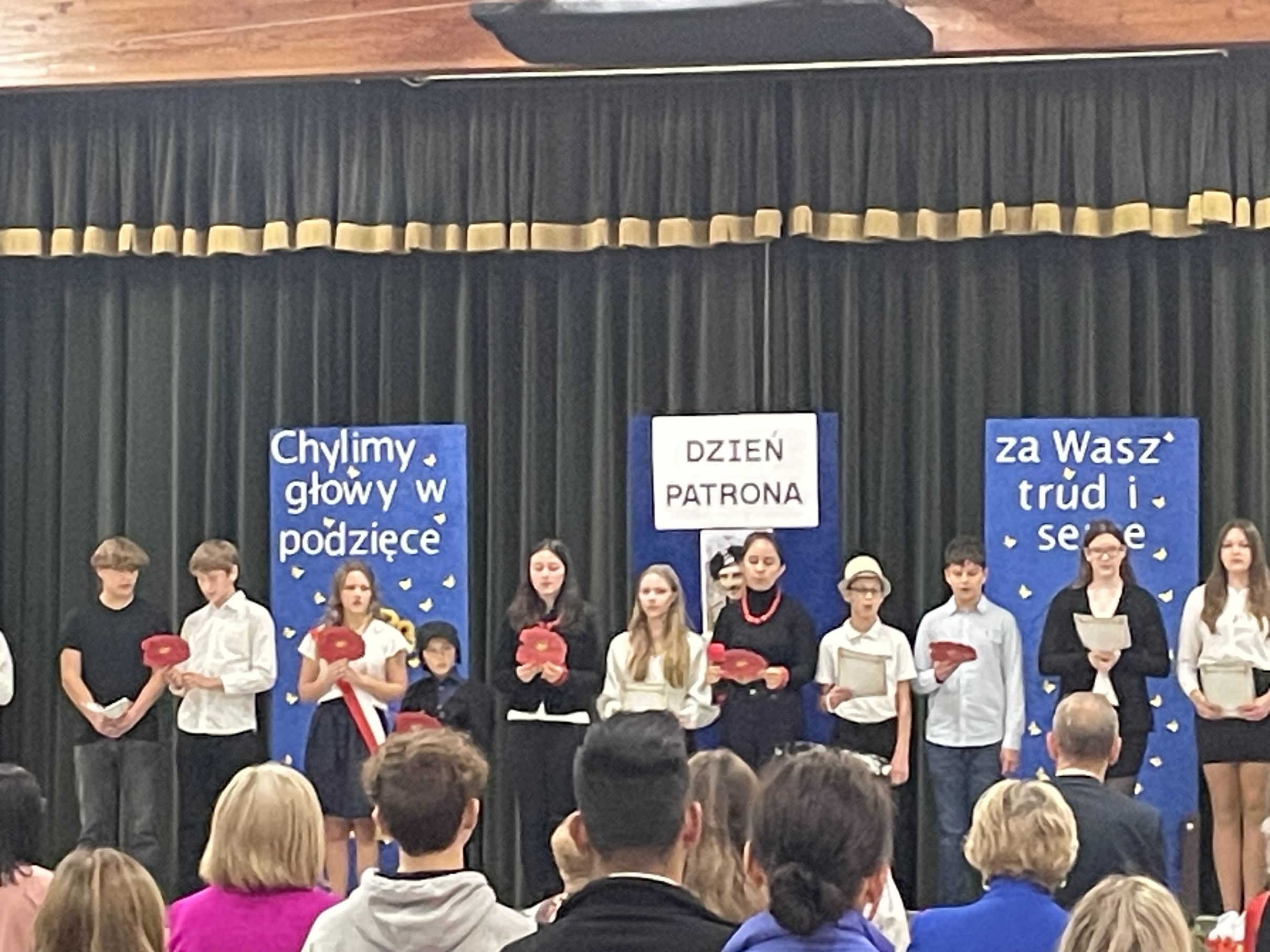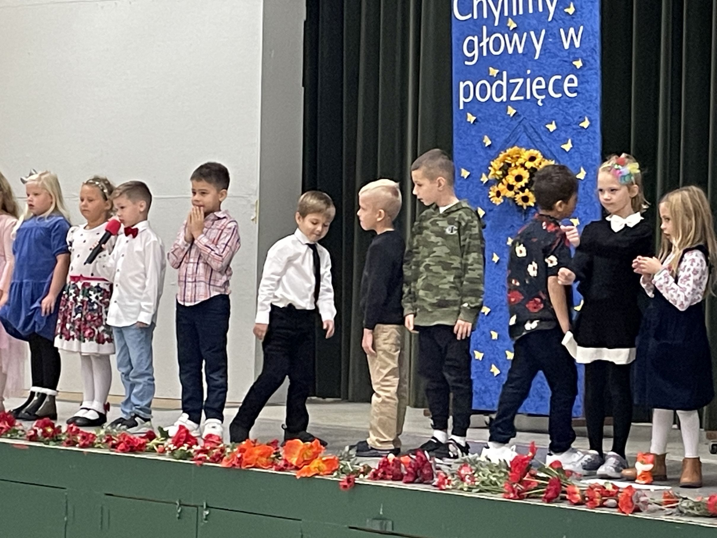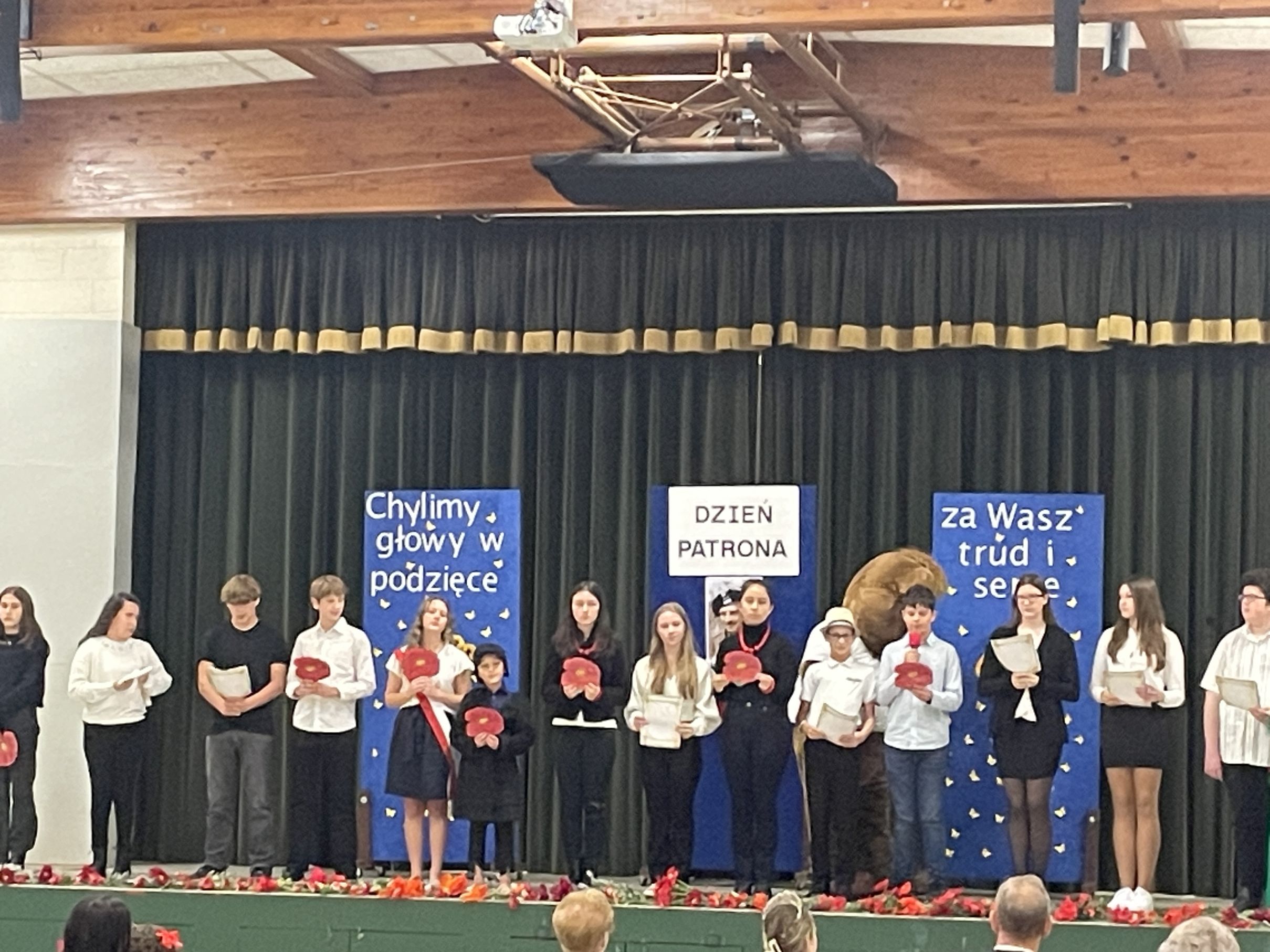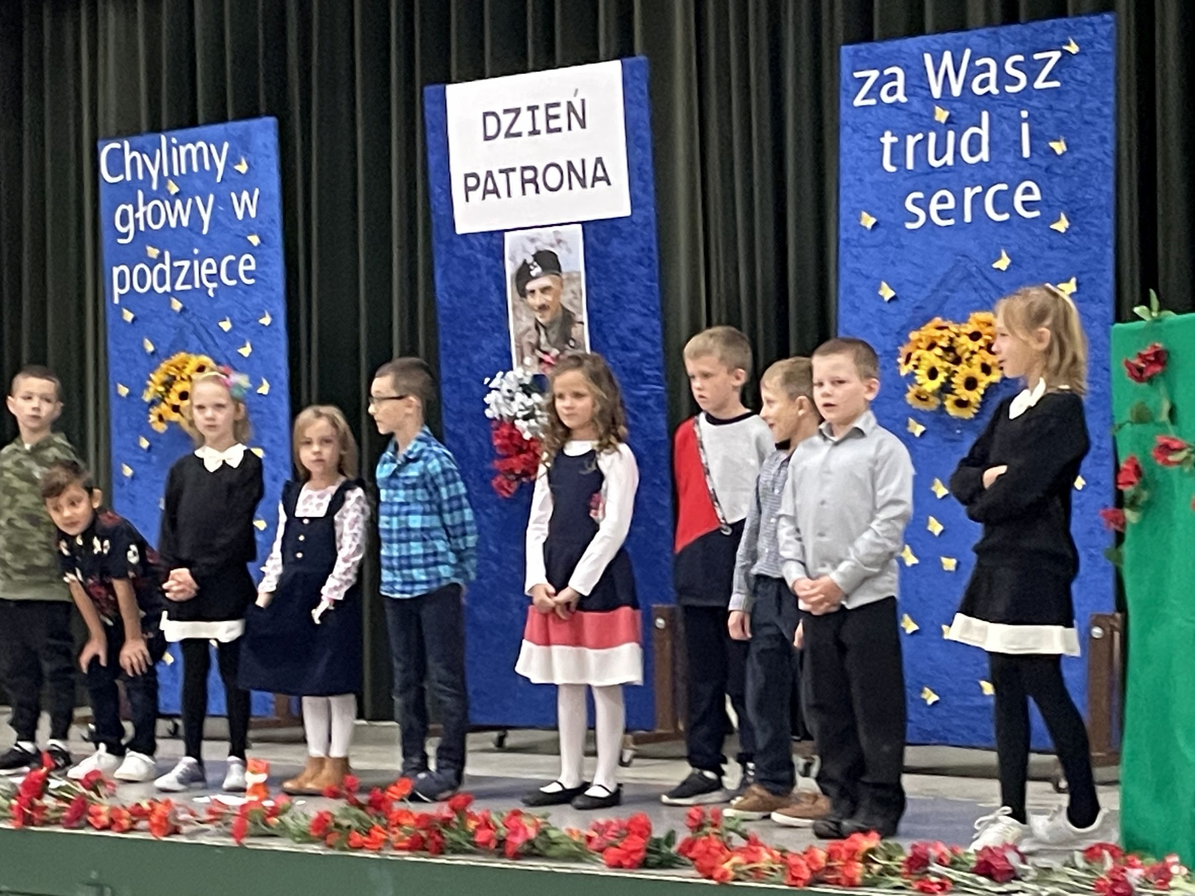 Każdego roku w październiku  obchodzimy Dzień Patrona i Dzień Edukacji Narodowej popularnie nazwany Dniem Nauczyciela. Na naszej uroczystości byli obecni zaproszeni goście: p.Maria Serafin, pierwsza kierowniczka szkoły oraz wieloletnia nauczycielka, p.Tomasz Dąbrowski ze SWAP Placówki 90 w Chicago oraz Carolina Woźniczka, przedstawicielka Związku Klubów Polskich, pierwsza Dama Królowej Parady 3 Maja 2023.