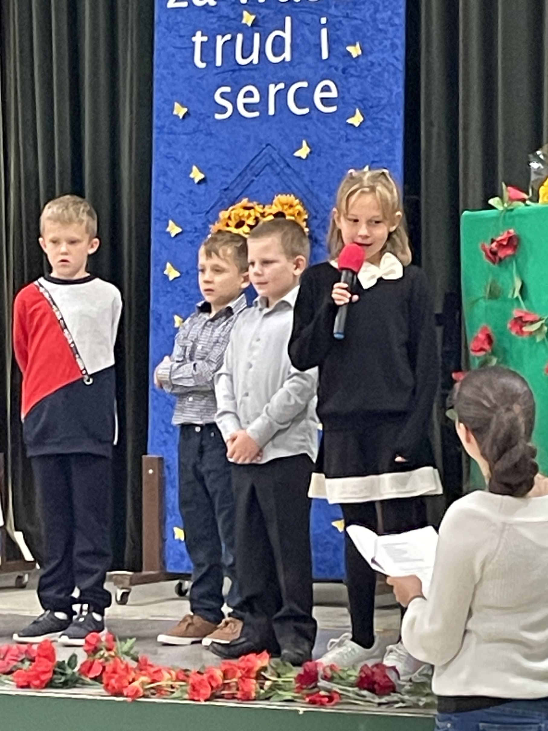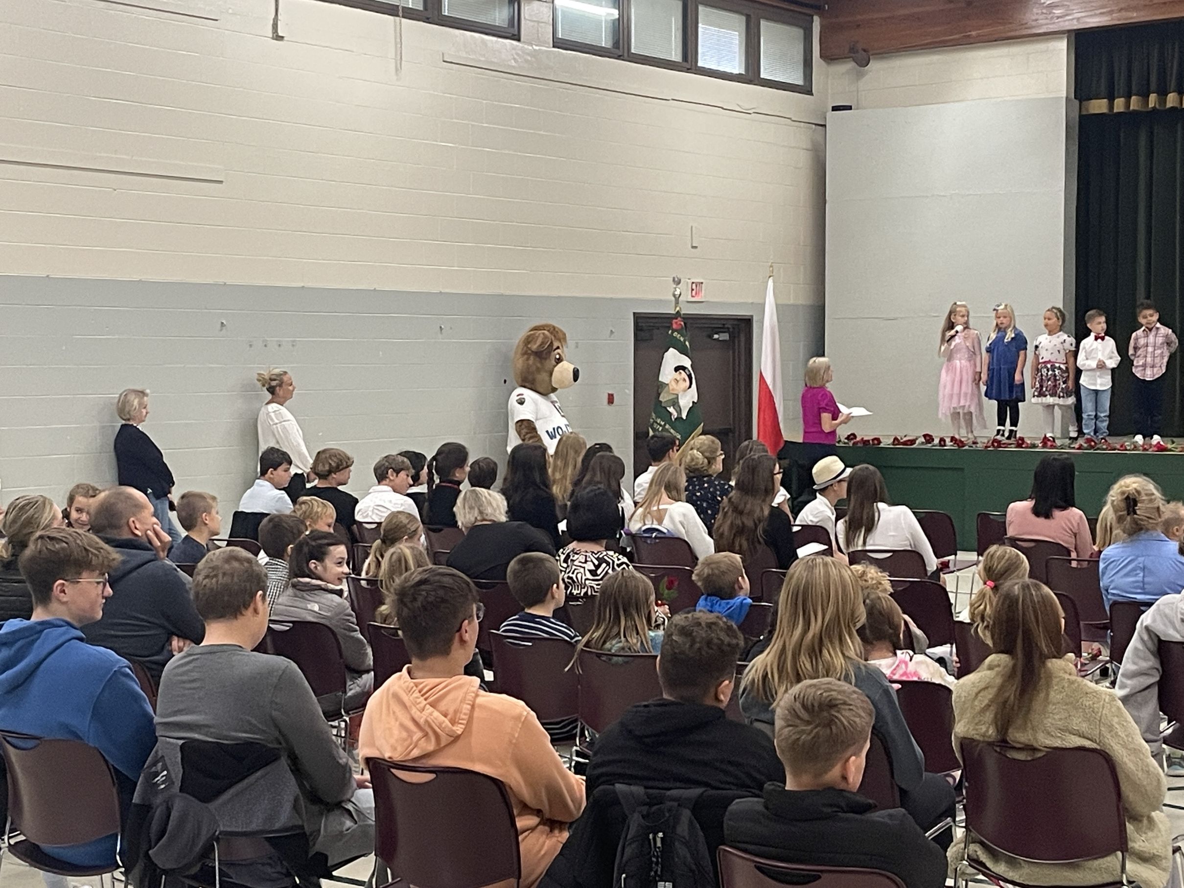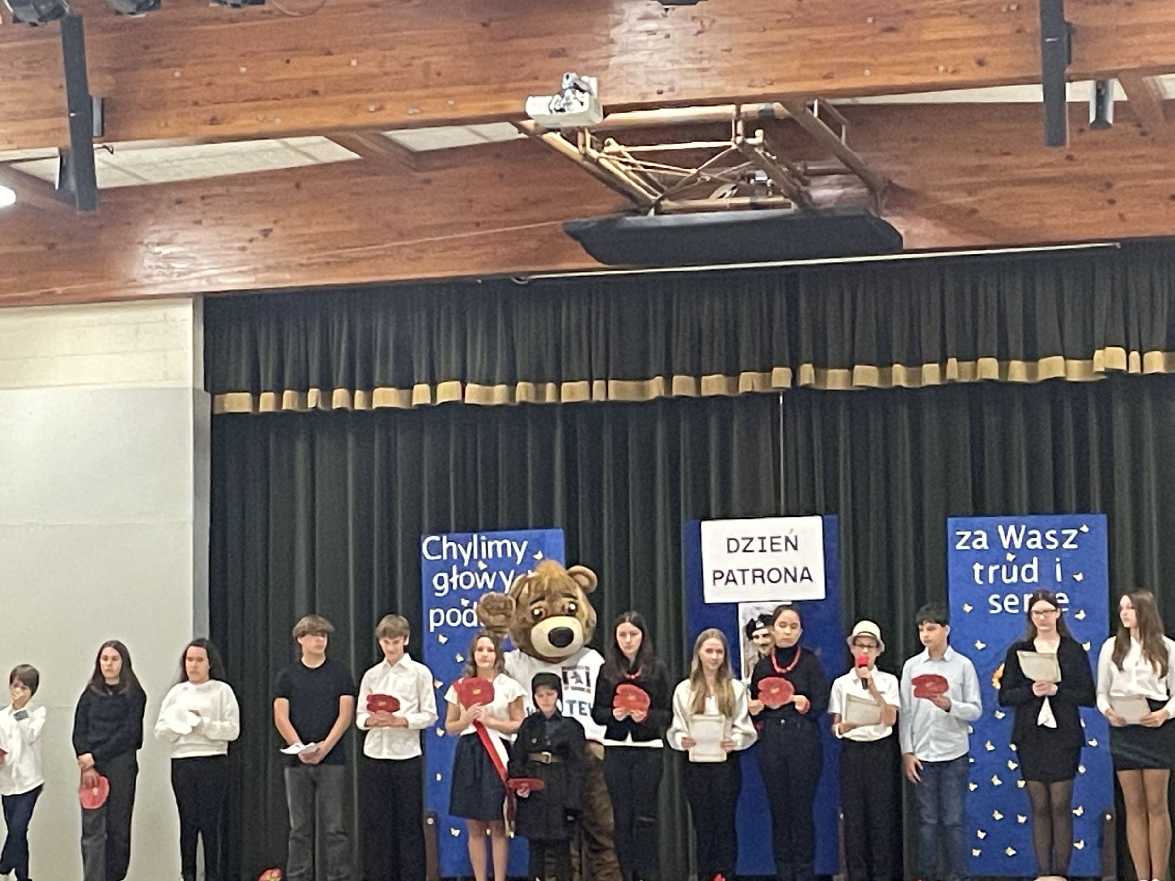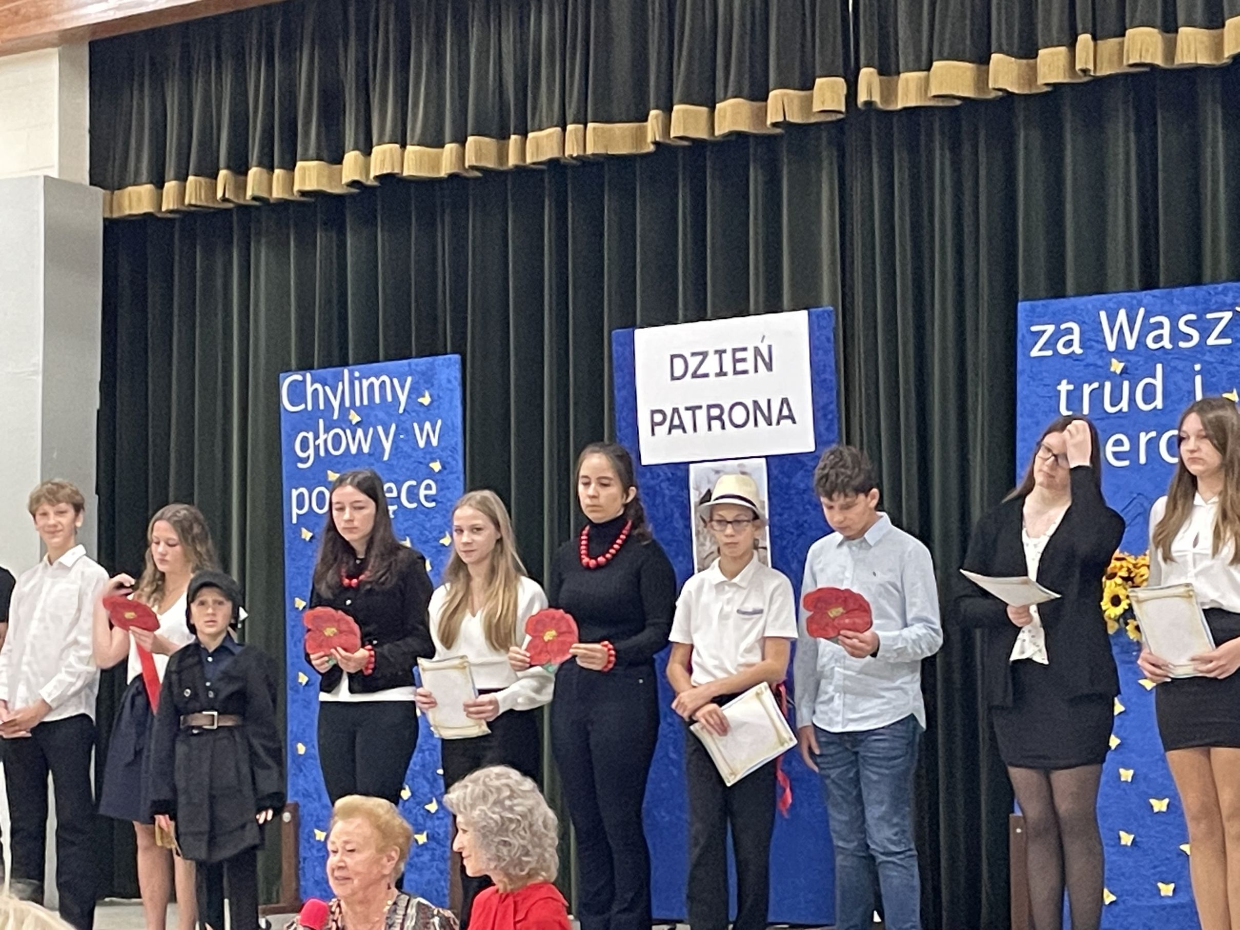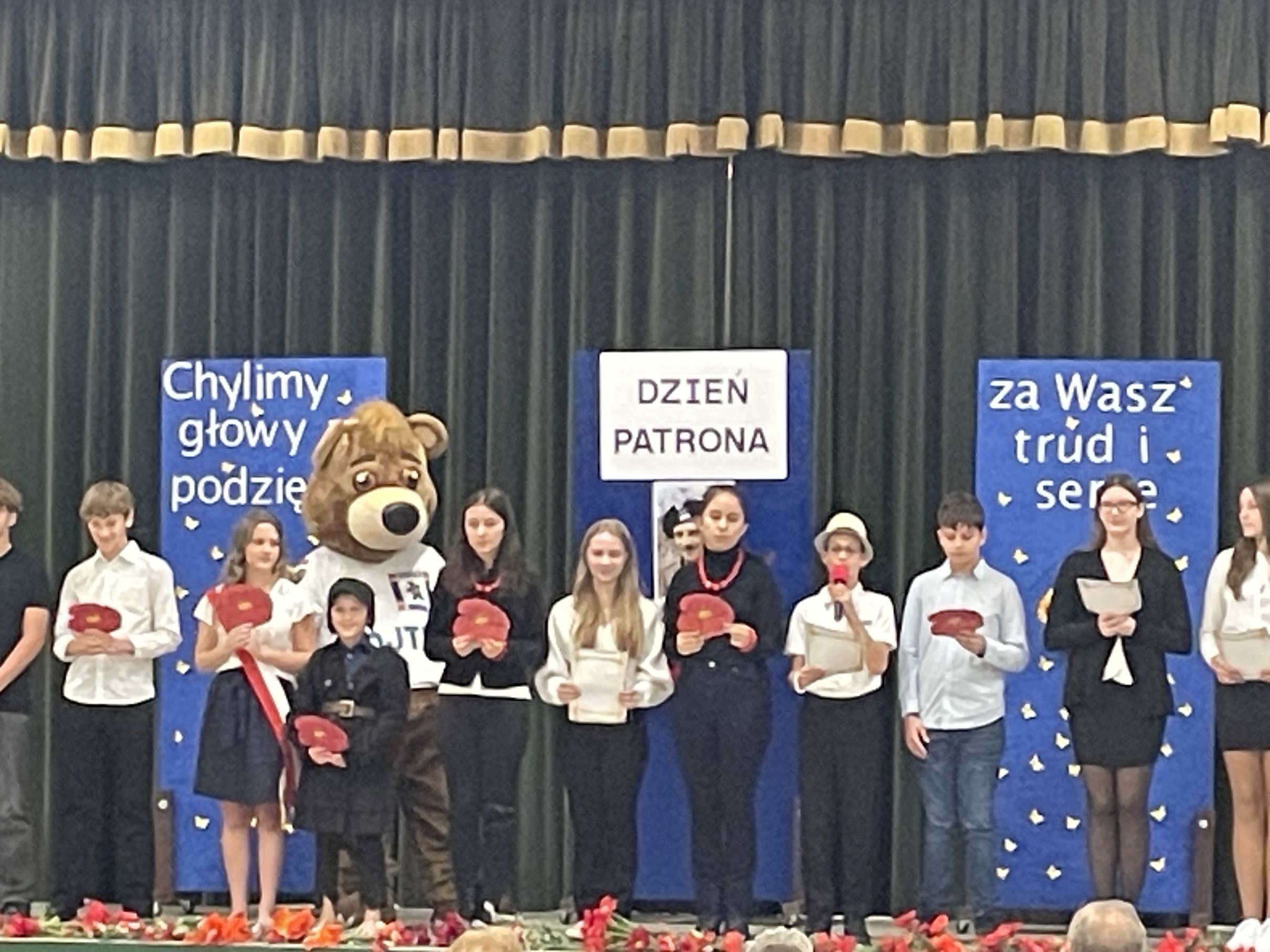 Każdego roku w październiku  obchodzimy Dzień Patrona i Dzień Edukacji Narodowej popularnie nazwany Dniem Nauczyciela. Na naszej uroczystości byli obecni zaproszeni goście: p.Maria Serafin, pierwsza kierowniczka szkoły oraz wieloletnia nauczycielka, p.Tomasz Dąbrowski ze SWAP Placówki 90 w Chicago oraz Carolina Woźniczka, przedstawicielka Związku Klubów Polskich, pierwsza Dama Królowej Parady 3 Maja 2023.
