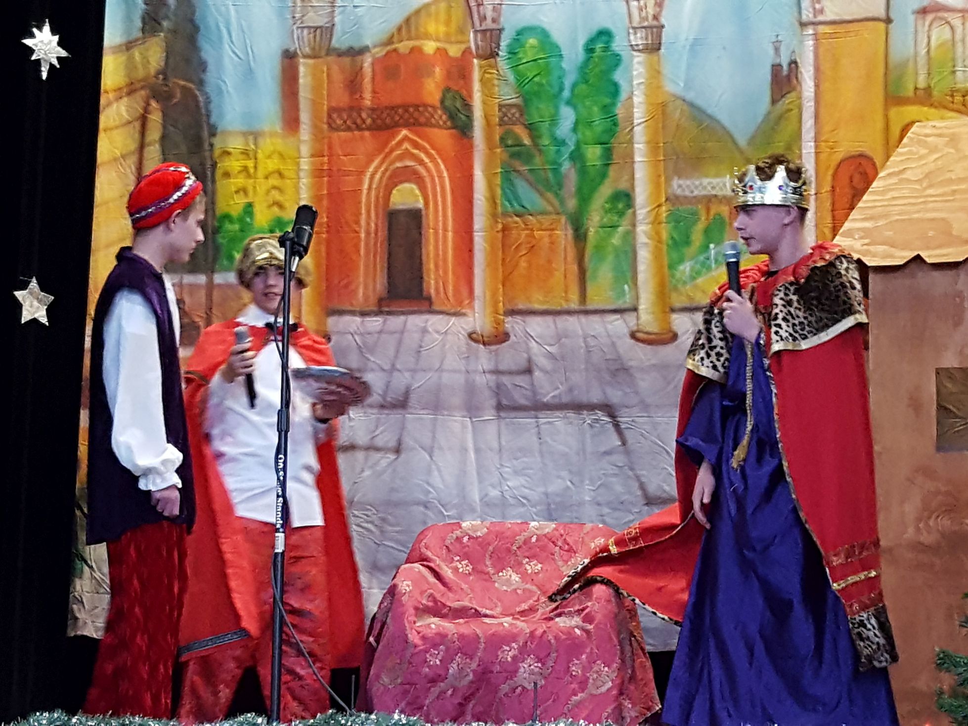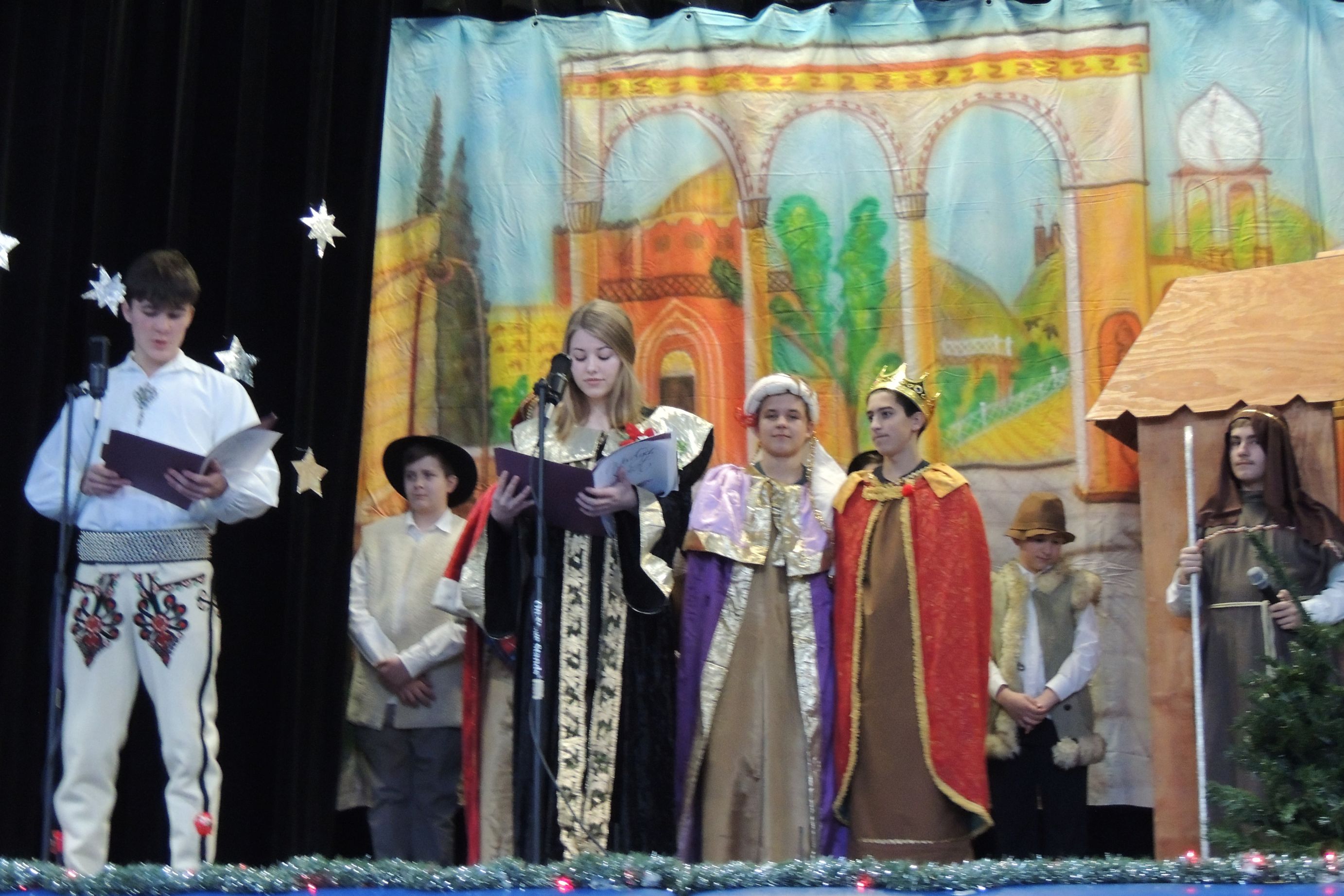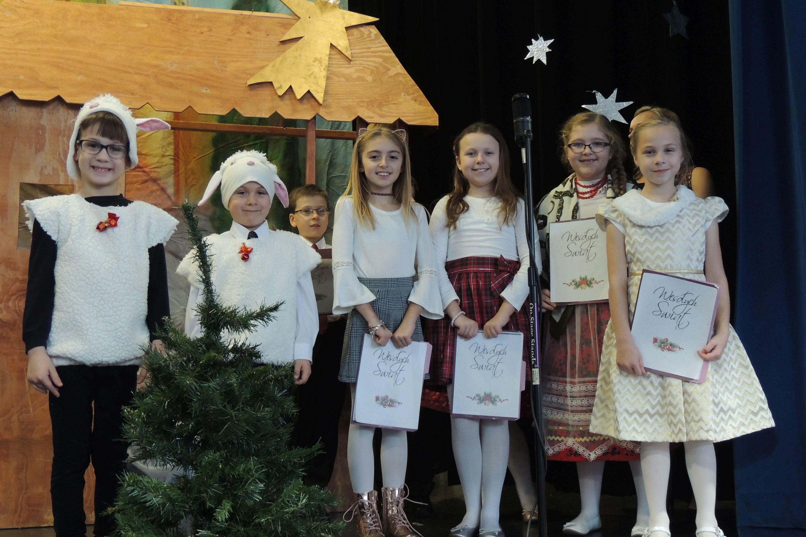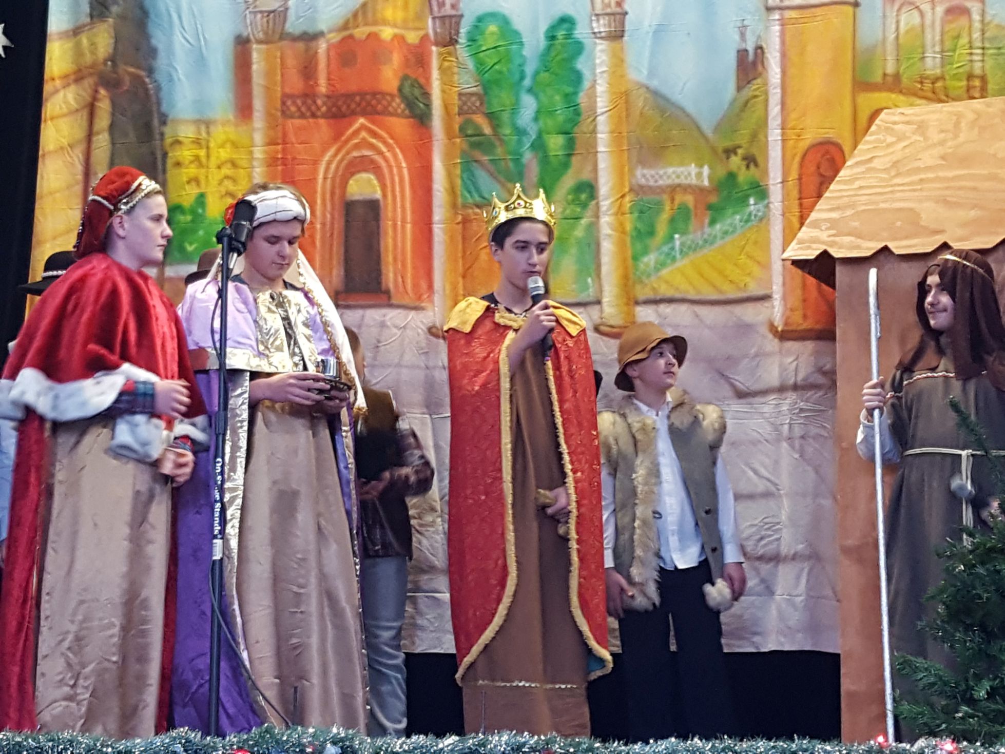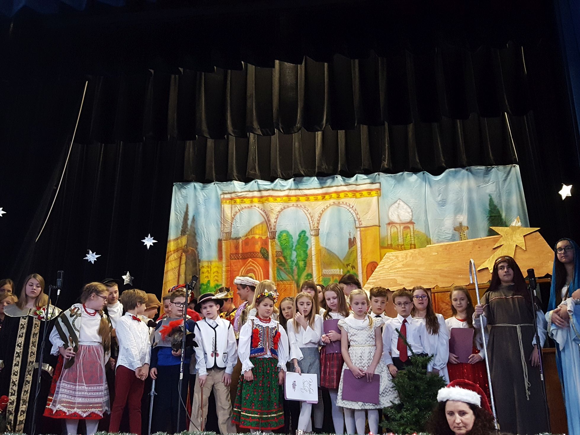 Coroczne przedstawienie jasełkowe to już tradycja naszej szkoły. Na początku spotkania życzenia świąteczne i noworoczne wszystkim złożyła p. Dyrektor Wanda Penar. W przedstawieniu wzięli udział uczniowie od przedszkola do kl.VIII oraz z kl. I i II liceum. Kolejny raz jasełka udowodniły, że w naszej szkole nie brakuje wspaniałych talentów.Narracja prowadzona przez Natalię Rak i Szymona Chryczyka przybliżyła historię związaną z narodzeniem Jezusa. Święta Rodzina w wykonaniu Dominiki Franczyk i Józia Jasienia przeniosła widzów do stajenki w Betlejem. Michał Franczyk pięknie zaśpiewał pastorałkę “Bosy pastuszek” a Karol Chmielewski doskonale wcielił się w króla Heroda. Uczniowie przygotowywali się z wielkim zaangażowaniem, pamiętając o powadze wydarzenia, jakim było przyjście na świat Zbawiciela. Zespół dzieci pod opieką Marioli Cichockiej odśpiewał kolędy i pastorałki, wprowadzając wszystkich w świąteczny i uroczysty nastrój. Przedstawienie zawierało wszystkie elementy tradycyjnych jasełek, była więc stajenka, Święta Rodzina, pastuszkowie,owieczki, aniołowie, Herod , Śmierć Diabeł i oczywiście Trzej Królowie. Na zakończenie jasełek dzieci z klasy V złożyły wszystkim świąteczne życzenia. Należy więc się cieszyć, że tradycja jasełek pozwala każdego roku zabłysnąć i pokazać się małym aktorom.