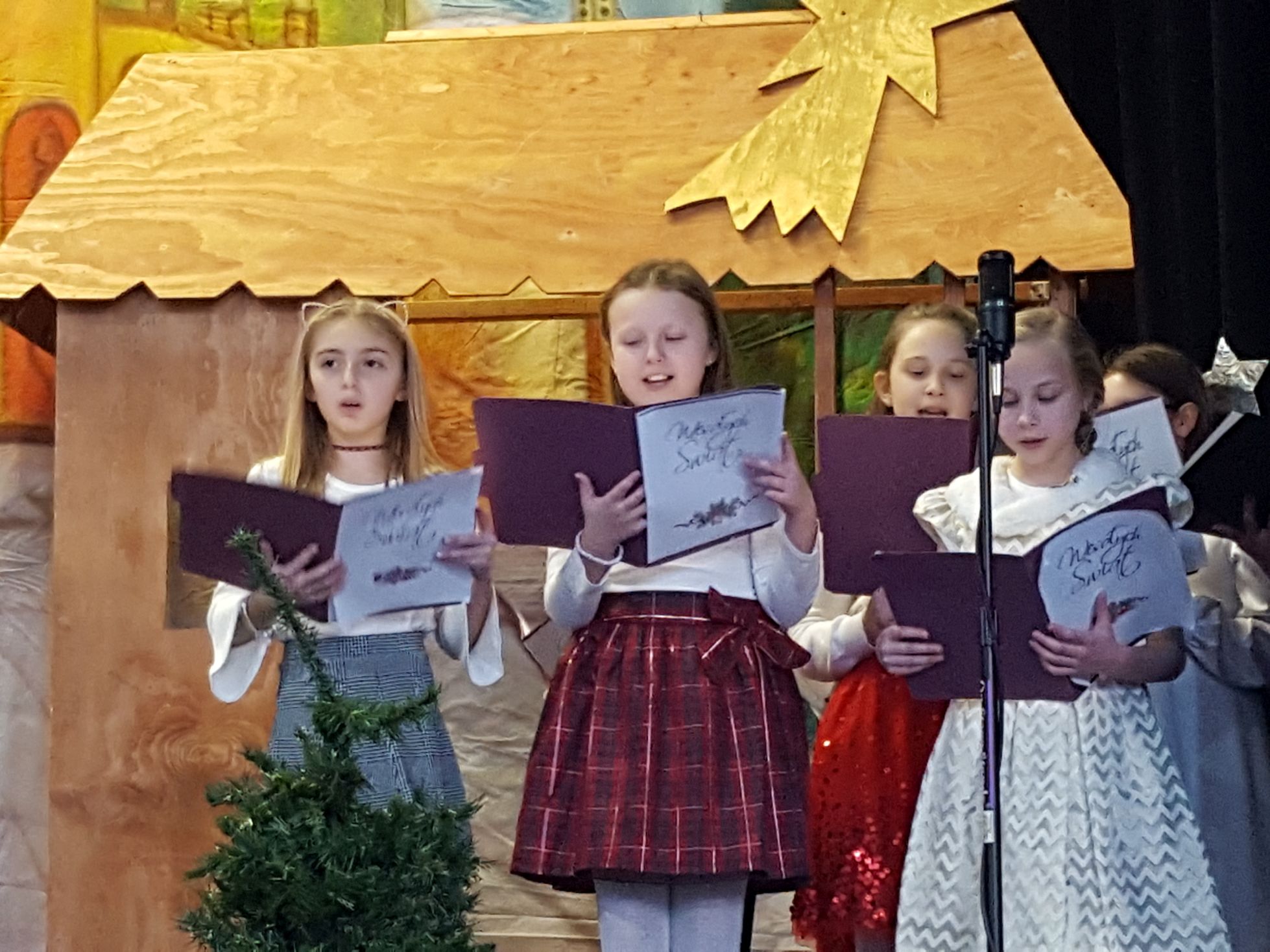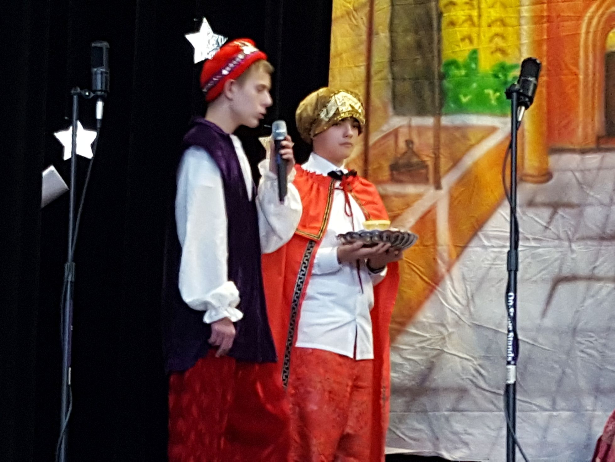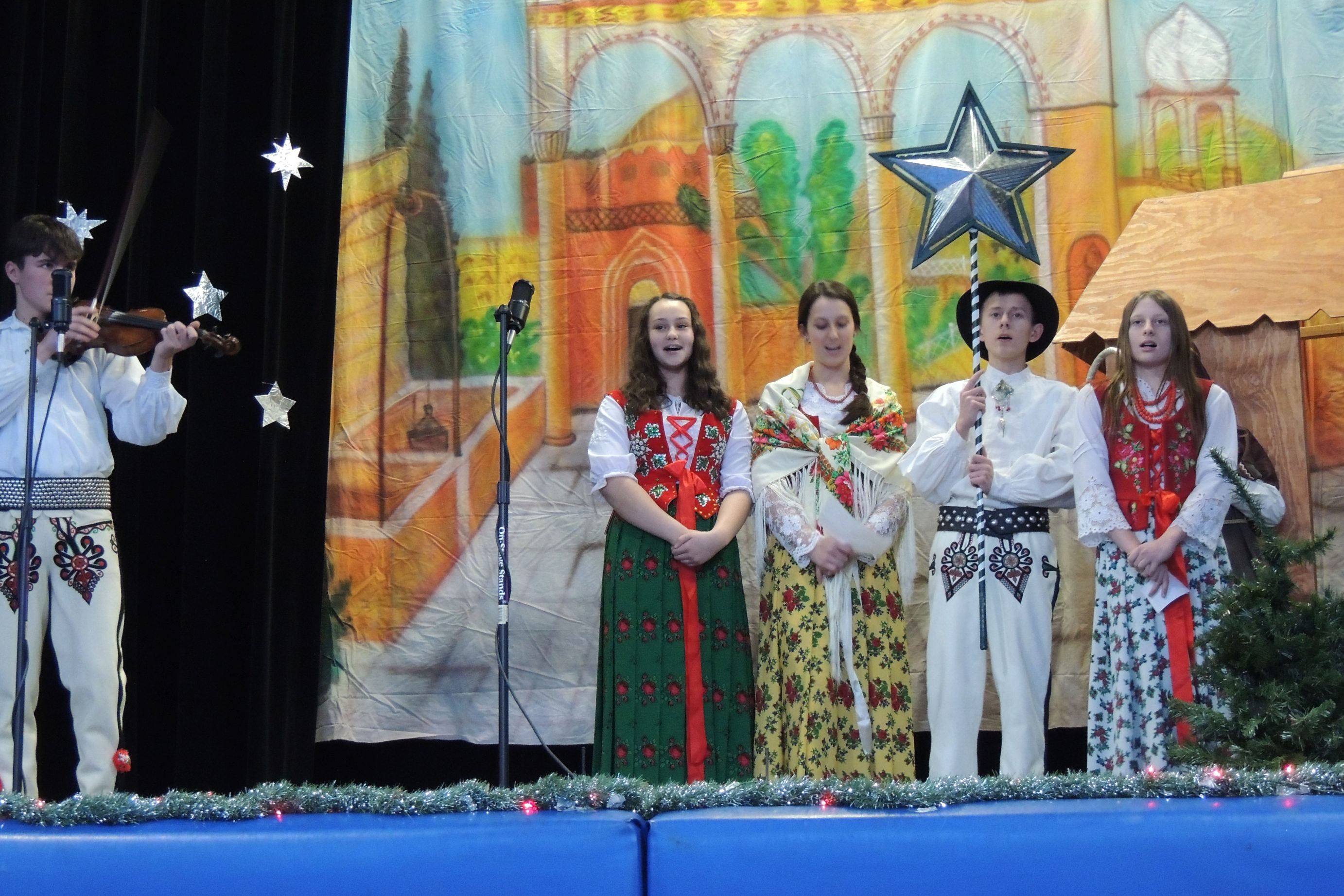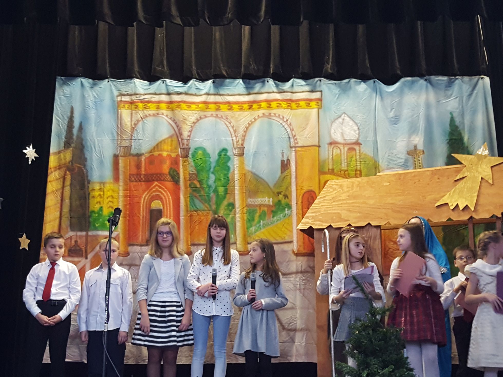 Coroczne przedstawienie jasełkowe to już tradycja naszej szkoły. Na początku spotkania życzenia świąteczne i noworoczne wszystkim złożyła p. Dyrektor Wanda Penar. W przedstawieniu wzięli udział uczniowie od przedszkola do kl.VIII oraz z kl. I i II liceum. Kolejny raz jasełka udowodniły, że w naszej szkole nie brakuje wspaniałych talentów.Narracja prowadzona przez Natalię Rak i Szymona Chryczyka przybliżyła historię związaną z narodzeniem Jezusa. Święta Rodzina w wykonaniu Dominiki Franczyk i Józia Jasienia przeniosła widzów do stajenki w Betlejem. Michał Franczyk pięknie zaśpiewał pastorałkę “Bosy pastuszek” a Karol Chmielewski doskonale wcielił się w króla Heroda. Uczniowie przygotowywali się z wielkim zaangażowaniem, pamiętając o powadze wydarzenia, jakim było przyjście na świat Zbawiciela. Zespół dzieci pod opieką Marioli Cichockiej odśpiewał kolędy i pastorałki, wprowadzając wszystkich w świąteczny i uroczysty nastrój. Przedstawienie zawierało wszystkie elementy tradycyjnych jasełek, była więc stajenka, Święta Rodzina, pastuszkowie,owieczki, aniołowie, Herod , Śmierć Diabeł i oczywiście Trzej Królowie. Na zakończenie jasełek dzieci z klasy V złożyły wszystkim świąteczne życzenia. Należy więc się cieszyć, że tradycja jasełek pozwala każdego roku zabłysnąć i pokazać się małym aktorom.
