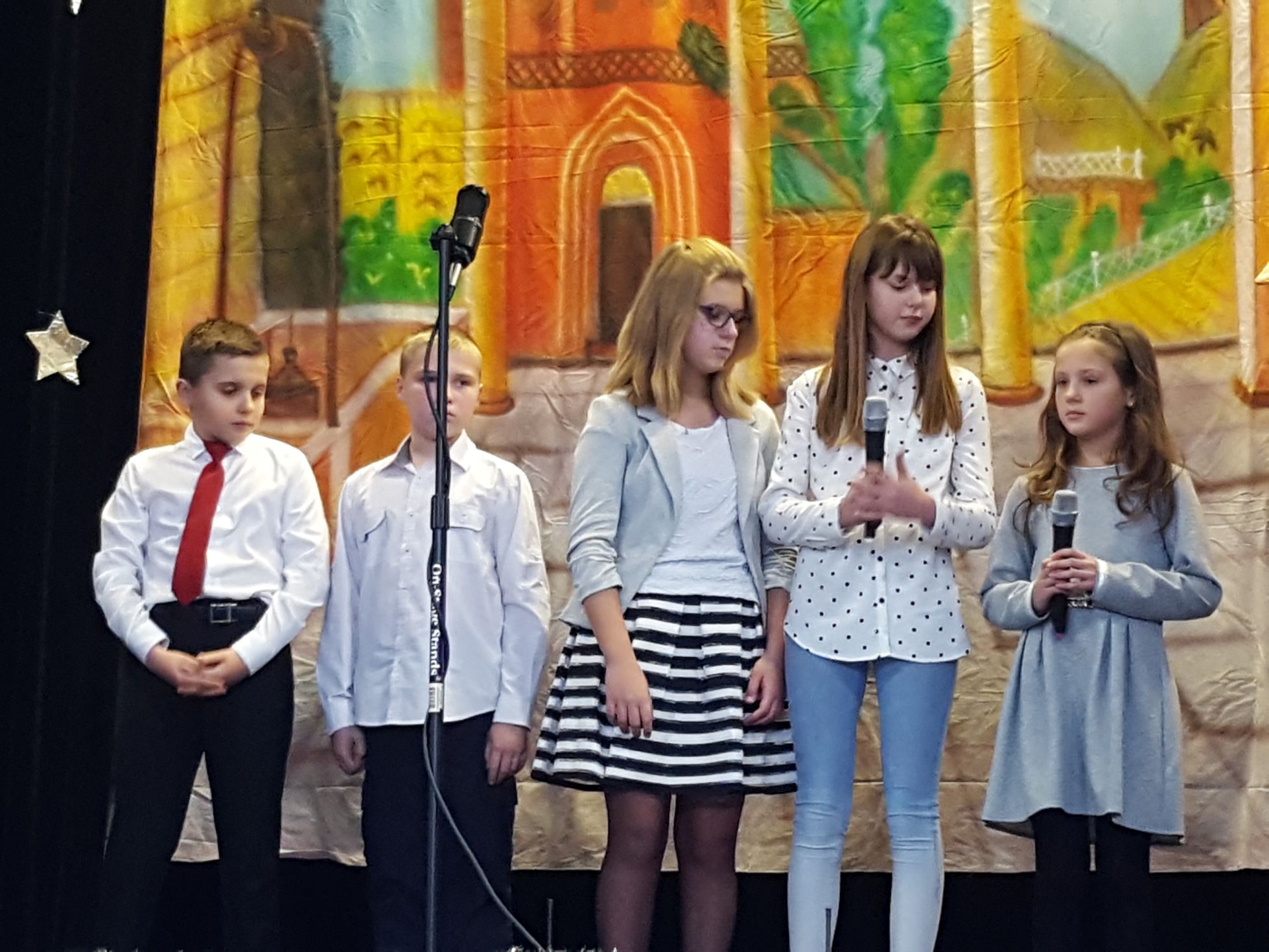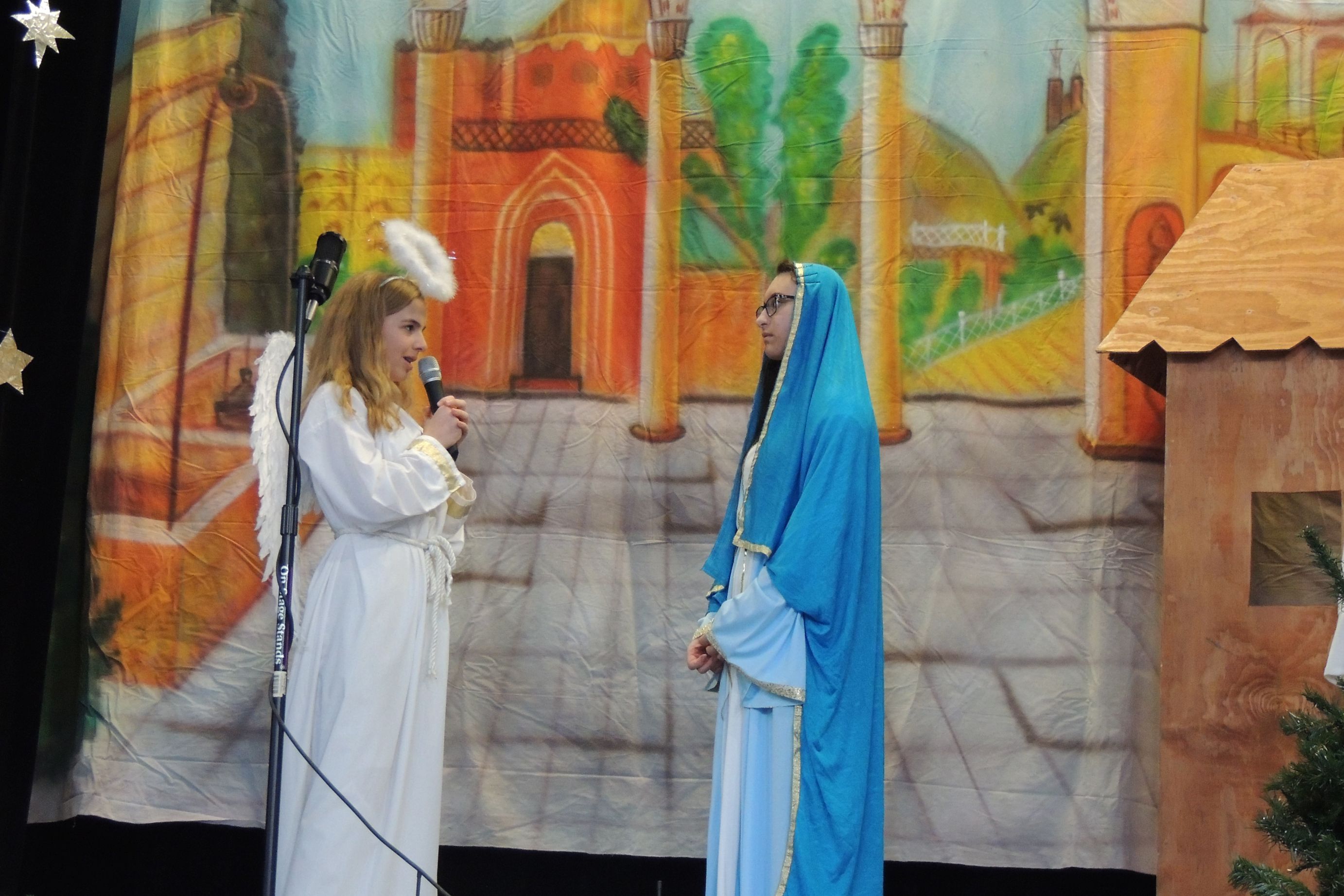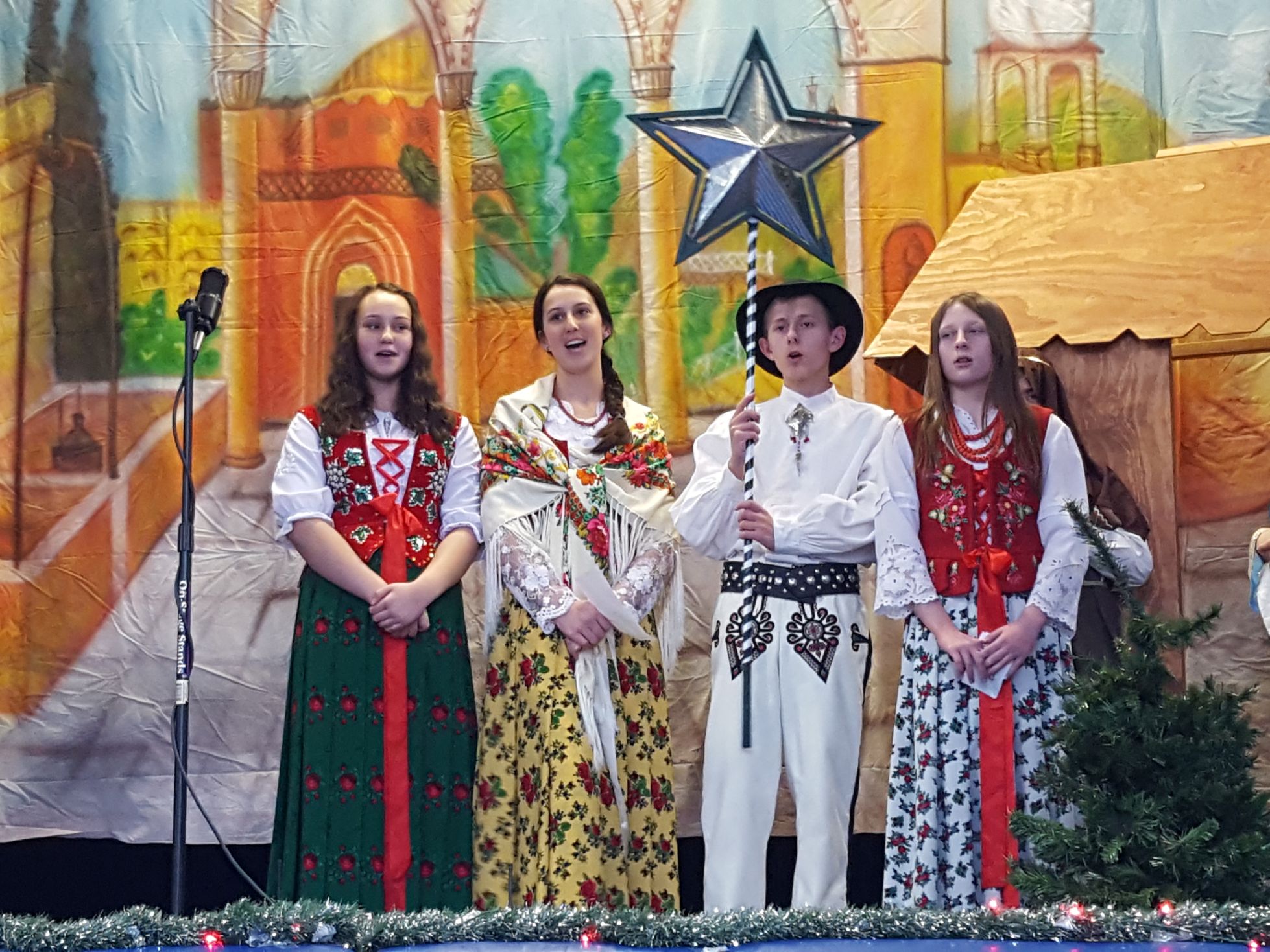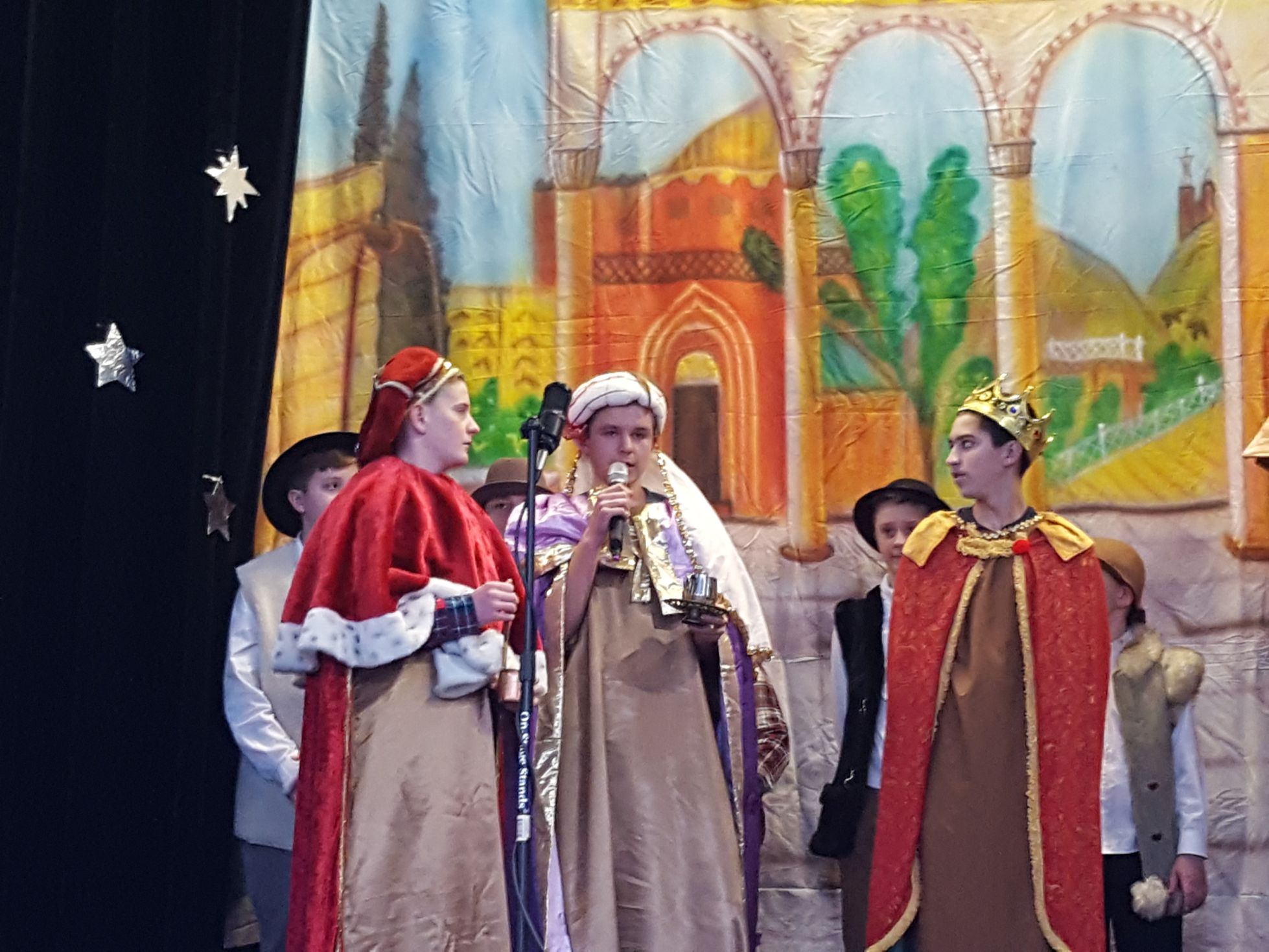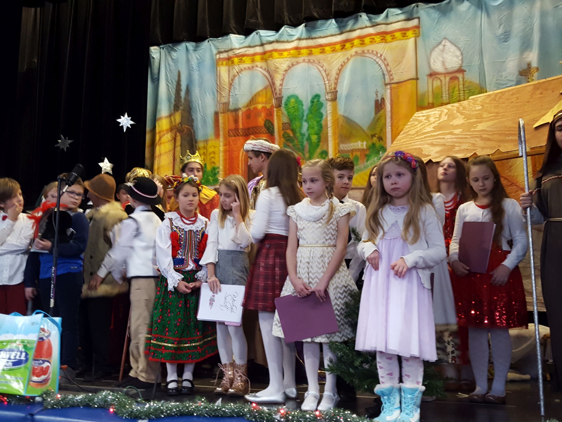 Coroczne przedstawienie jasełkowe to już tradycja naszej szkoły. Na początku spotkania życzenia świąteczne i noworoczne wszystkim złożyła p. Dyrektor Wanda Penar. W przedstawieniu wzięli udział uczniowie od przedszkola do kl.VIII oraz z kl. I i II liceum. Kolejny raz jasełka udowodniły, że w naszej szkole nie brakuje wspaniałych talentów.Narracja prowadzona przez Natalię Rak i Szymona Chryczyka przybliżyła historię związaną z narodzeniem Jezusa. Święta Rodzina w wykonaniu Dominiki Franczyk i Józia Jasienia przeniosła widzów do stajenki w Betlejem. Michał Franczyk pięknie zaśpiewał pastorałkę “Bosy pastuszek” a Karol Chmielewski doskonale wcielił się w króla Heroda. Uczniowie przygotowywali się z wielkim zaangażowaniem, pamiętając o powadze wydarzenia, jakim było przyjście na świat Zbawiciela. Zespół dzieci pod opieką Marioli Cichockiej odśpiewał kolędy i pastorałki, wprowadzając wszystkich w świąteczny i uroczysty nastrój. Przedstawienie zawierało wszystkie elementy tradycyjnych jasełek, była więc stajenka, Święta Rodzina, pastuszkowie,owieczki, aniołowie, Herod , Śmierć Diabeł i oczywiście Trzej Królowie. Na zakończenie jasełek dzieci z klasy V złożyły wszystkim świąteczne życzenia. Należy więc się cieszyć, że tradycja jasełek pozwala każdego roku zabłysnąć i pokazać się małym aktorom.