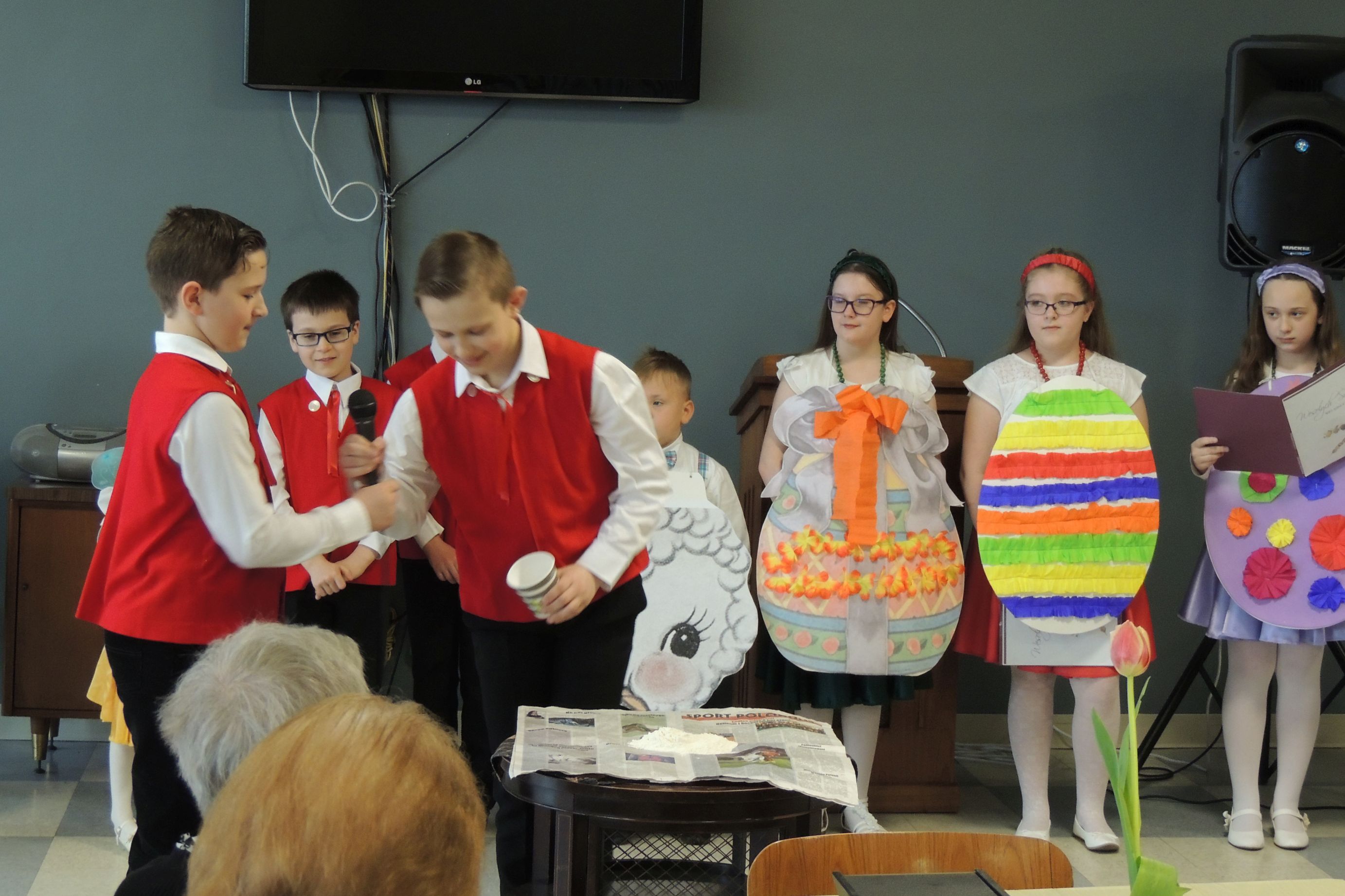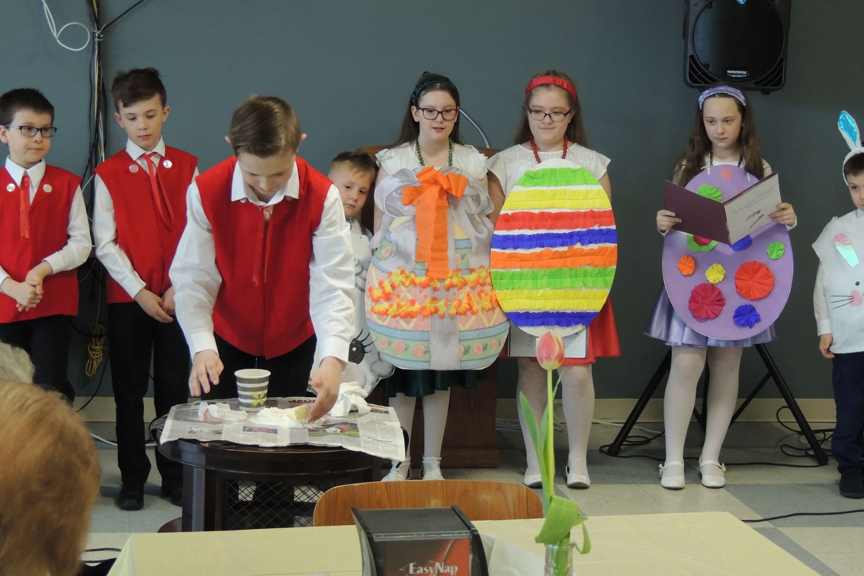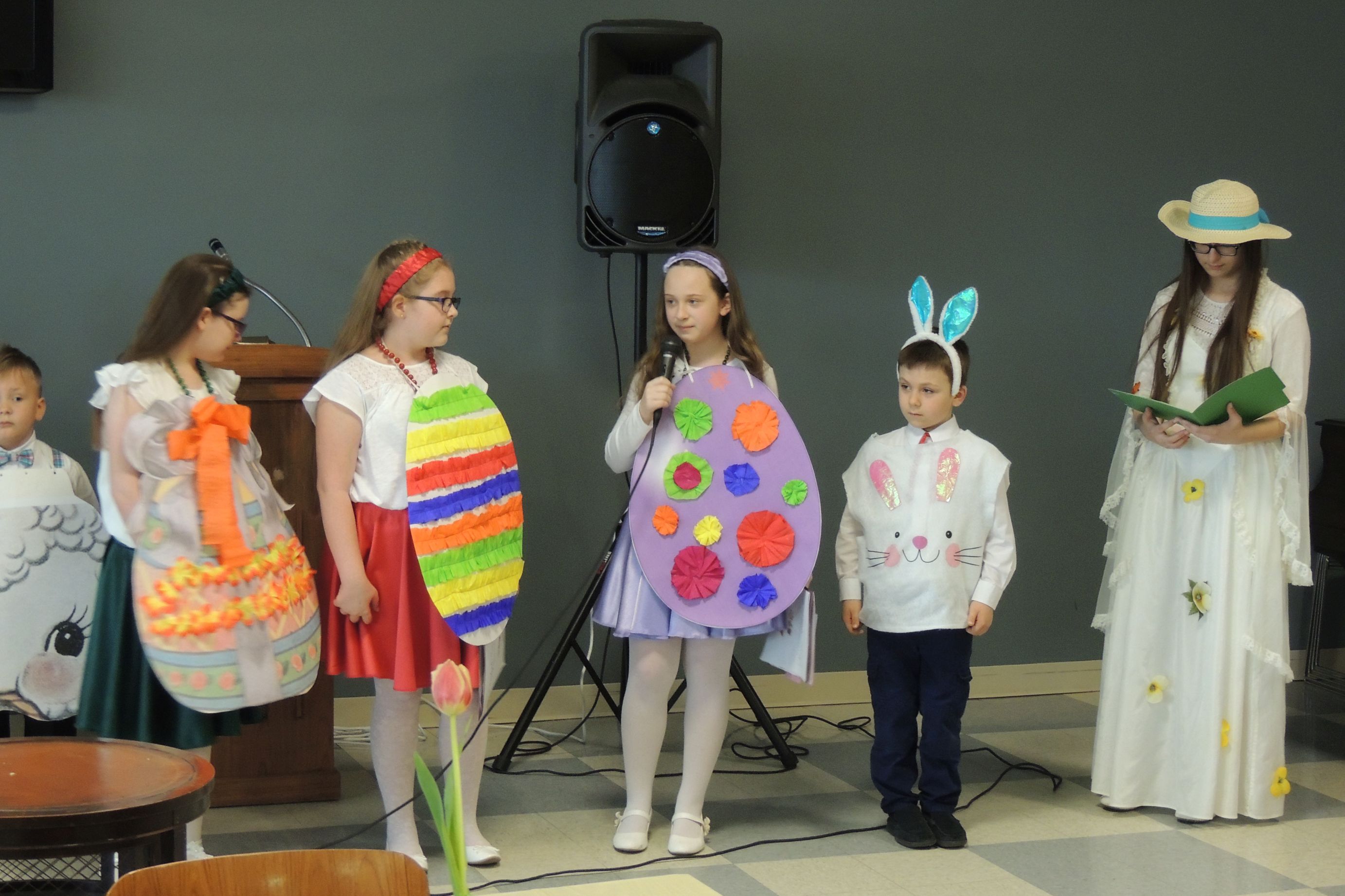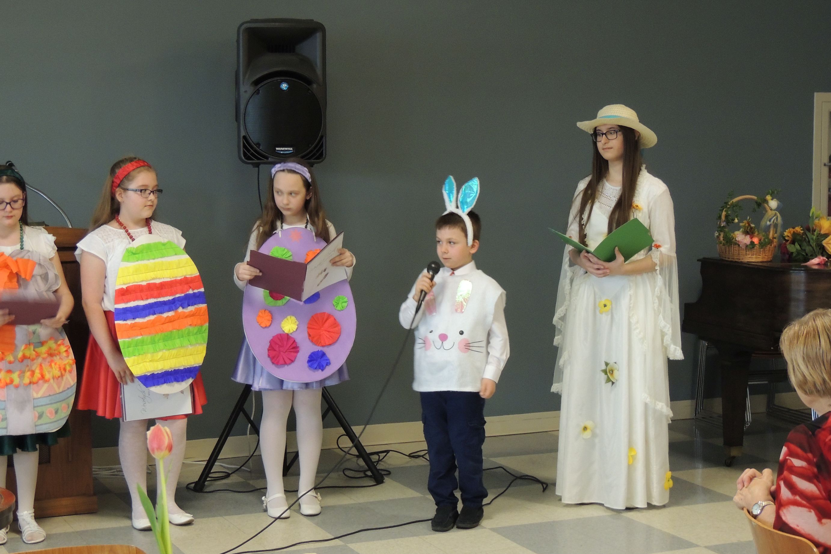 W niedzielę 7 marca 2019 r. dzieci należące do “Kółka teatralnego” działającego w naszej szkole, wystąpiły z programem wiosenno – wielkanocnym w PNA. Uczniowie recytowali wiersze i śpiewali piosenki związane z tym okresem. Pani Wiosna przyniosła koszyczek wielkanocny z barankiem, pisankami, kurczakiem. Nie zabrakło także życzeń na czas Wielkiej Nocy. Na zakończenie dzieci wykonały układ taneczny z biało-czerwonymi szarfami.